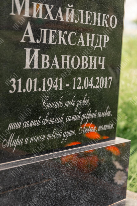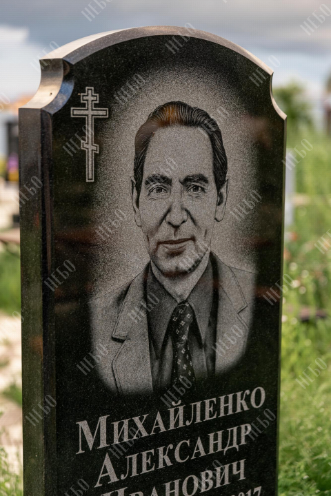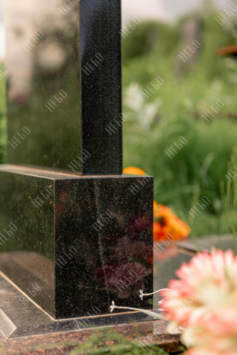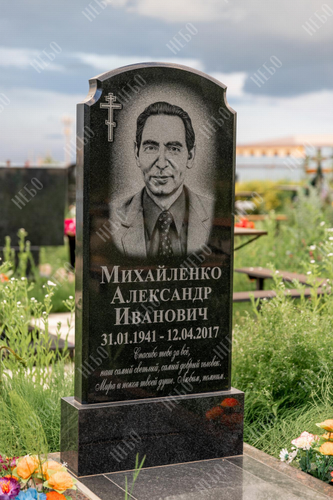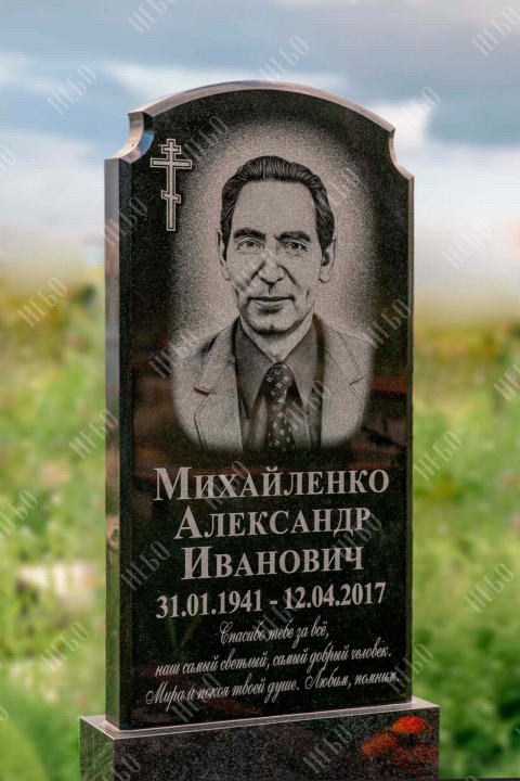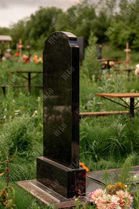 Христианский памятник с вертикальной стелой и закрытым надгробием. Гранитная стела ритуального изделия имеет аркообразный верх и фигурные углы. Такое исполнение придает внешнему виду памятника сдержанный, но в то же время оригинальный вид. Размер и форма памятника проработаны экспертами с учетом нагрузки и эстетического восприятия ритуального изделия. Закрытое надгробие исключает появление сорняков на поверхности, а эпитафия на плите придает памятнику завершенный внешний вид.