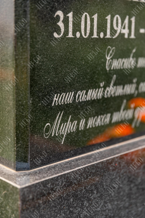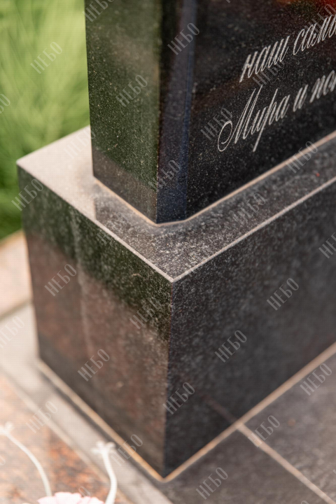 Для изготовления памятника использован гранит карельский габбро-диабаз. Это горная порода, отличающаяся прочностью и повышенной износостойкостью. Карельский габбро-диабаз устойчив к влаге и перепадам температур. Его плотность выше, чем у мрамора, поэтому именно его использовали при воздвижении вековых колонн исторических зданий. Гранитный памятник габбро-диабаз не требует особого ухода, обладает насыщенным черным цветом, что делает внешний вид памятника благородным и лаконичным.