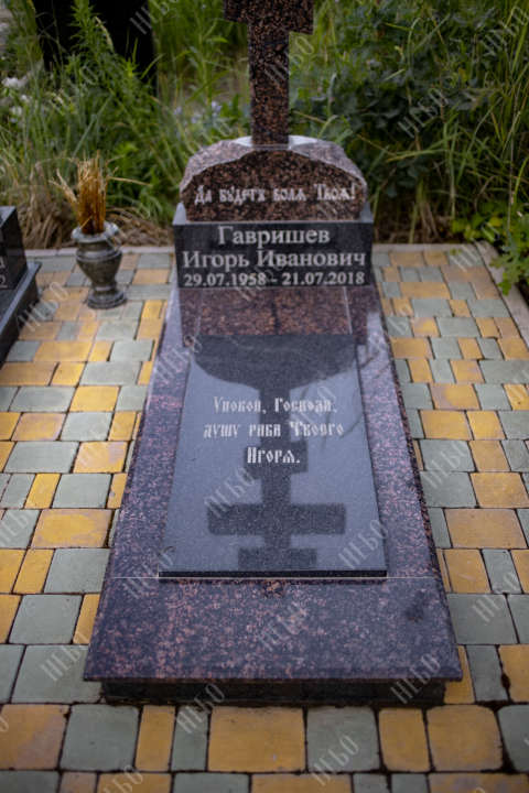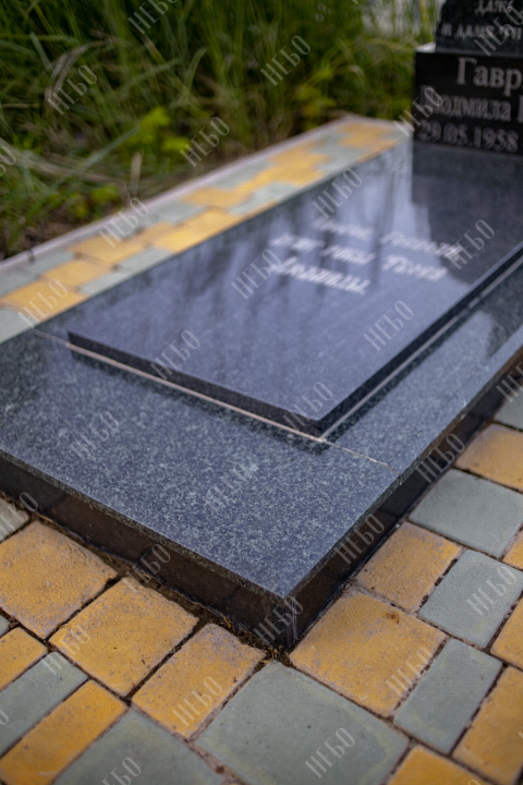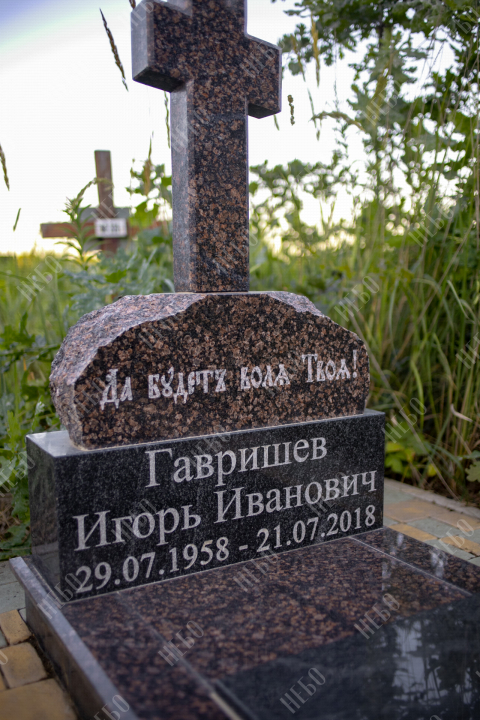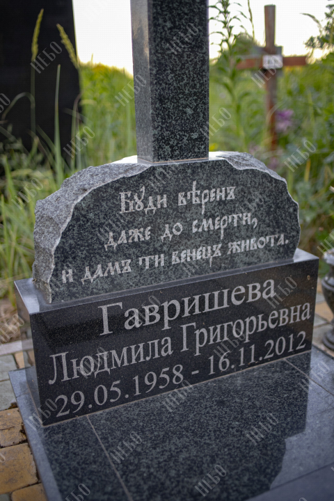 Данное ритуальное изделие изготовлено без изображения фотографии усопшего. Стелла памятника содержит изображение ангела и информацию о покойном, нанесение которой выполнено алмазными иглами на современном оборудовании. Использование технологии такой гравировки исключает любые деформации текста, он не подвержен стираемости и виден в любую погоду. Данный памятник служит отличным примером тому, что и без нанесения фотографии ритуальное изделие может выглядеть достойно и презентабельно, соответствуя всем религиозным канонам.