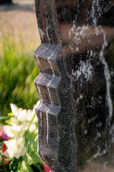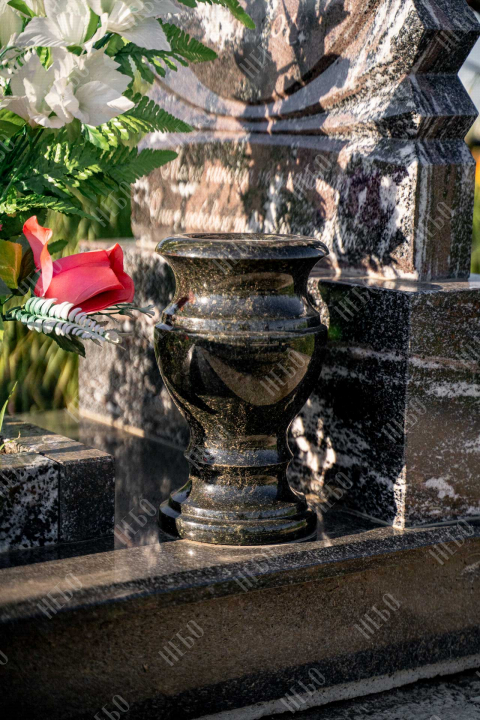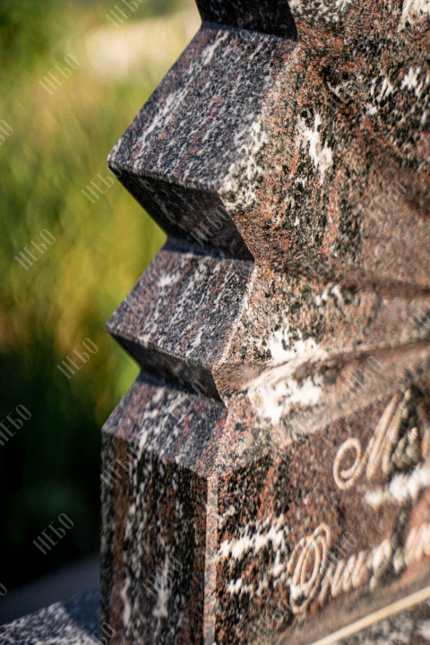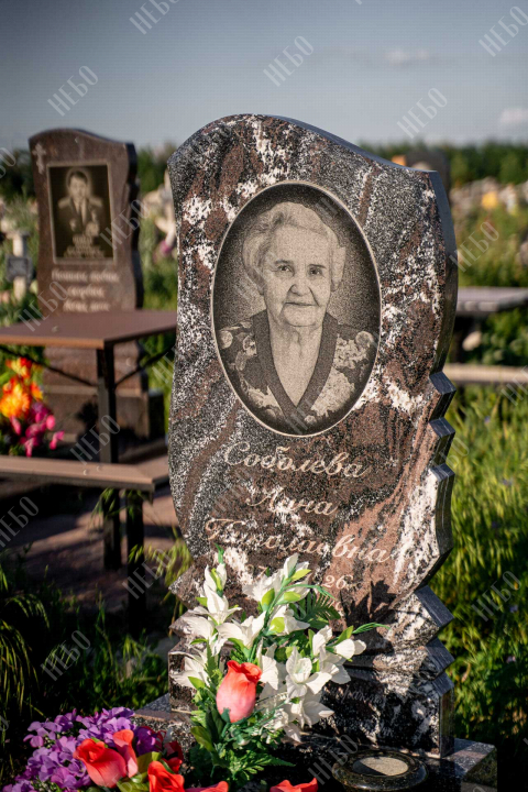 Памятник с вертикальной стелой и открытым надгробием выполнен с использованием декоративных элементов. Гранитная стела ритуального изделия имеет ассиметричную форму и фигурно обработанные края по контуру. Такое исполнение придает внешнему виду памятника сдержанный, но в то же время оригинальный вид. Размер и форма памятника проработаны экспертами с учетом нагрузки и эстетического восприятия ритуального изделия. Открытое надгробие позволит в дальнейшем использовать пространство на его поверхности для высадки цветов или других растений.