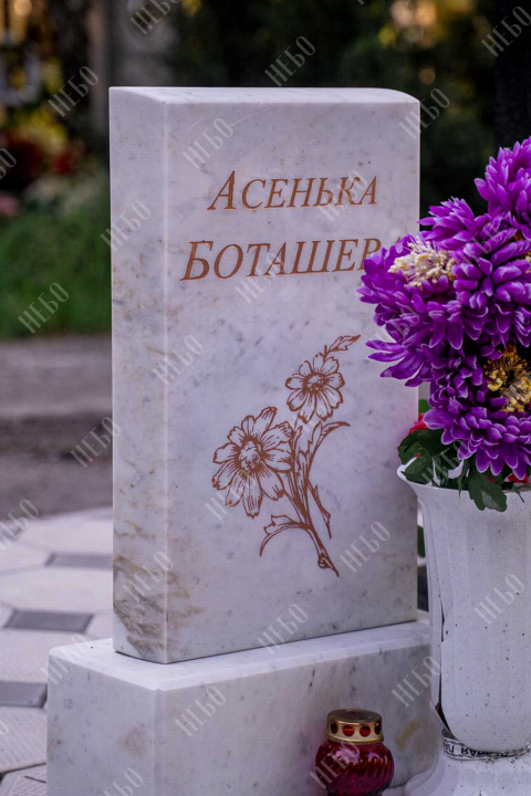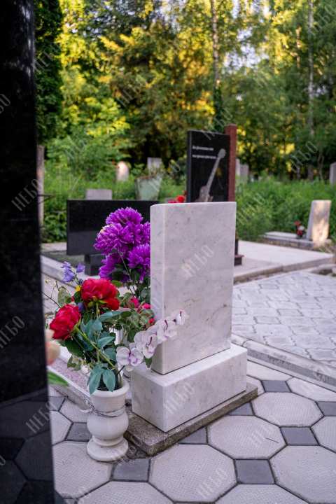 Детский прямой памятник с закрытым надгробием и мраморной вазой у основания. Миниатюрные объемы ритуального изделия, ровные линии в оформлении и его нежный светлый цвет лаконично сочетаются между собой, выделяя детский памятник на фоне остальных. Гладкая и ровная поверхность надгробия позволяет расположить на нем эпитафию, а на невысокой стеле родные могут разместить информацию об усопшем. Памятник изготовлен с учетом всех нюансов почвы на выбранном кладбище, размеры и форма изделия тщательно проработаны специалистами, дабы исключить возможные искажения в будущем.